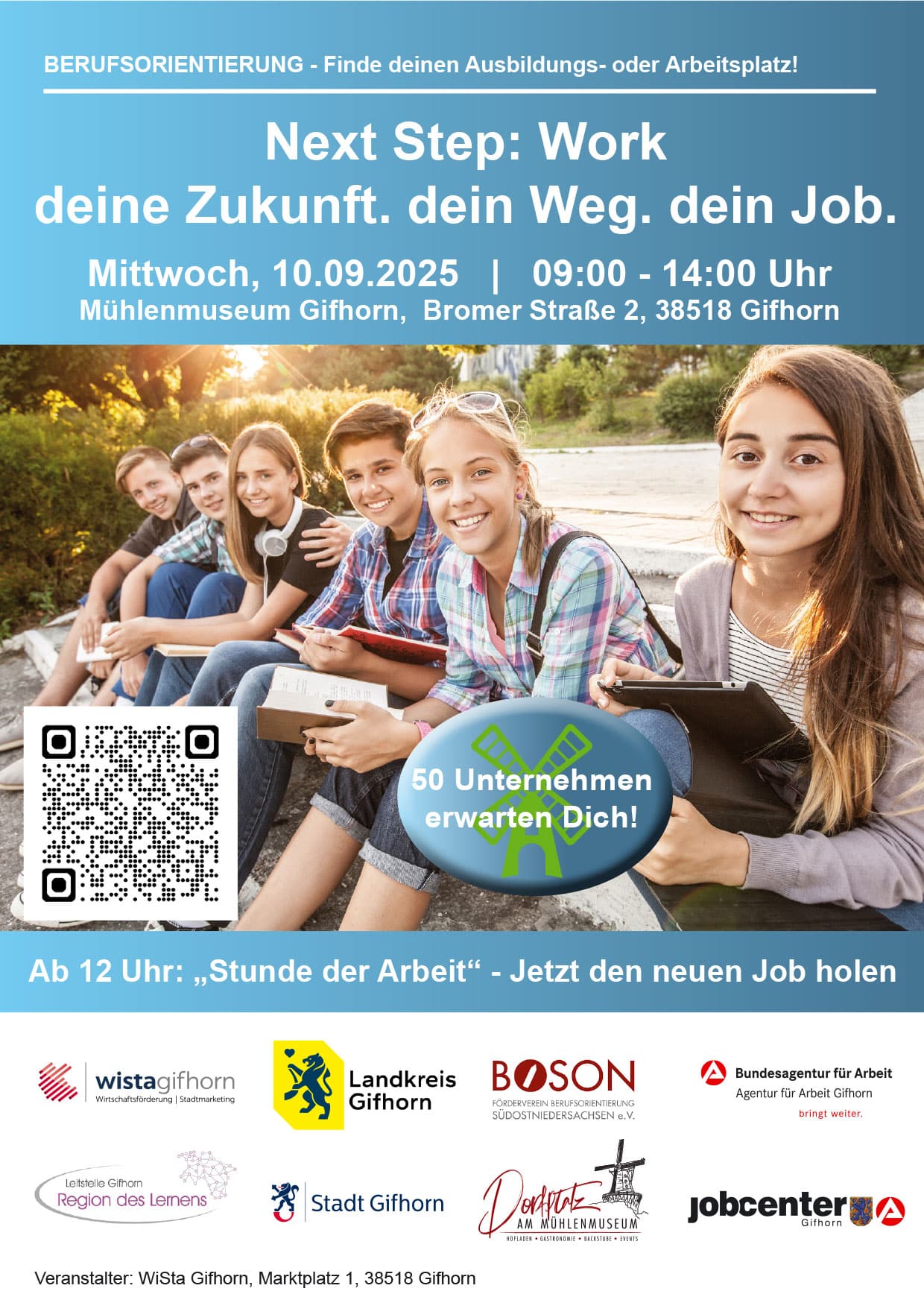 Ausbildungs- und Jobbörse im Außengelände des Mühlenmuseums Gifhorn: Mittwoch, 10. September 2025, 9 – 14 Uhr.
