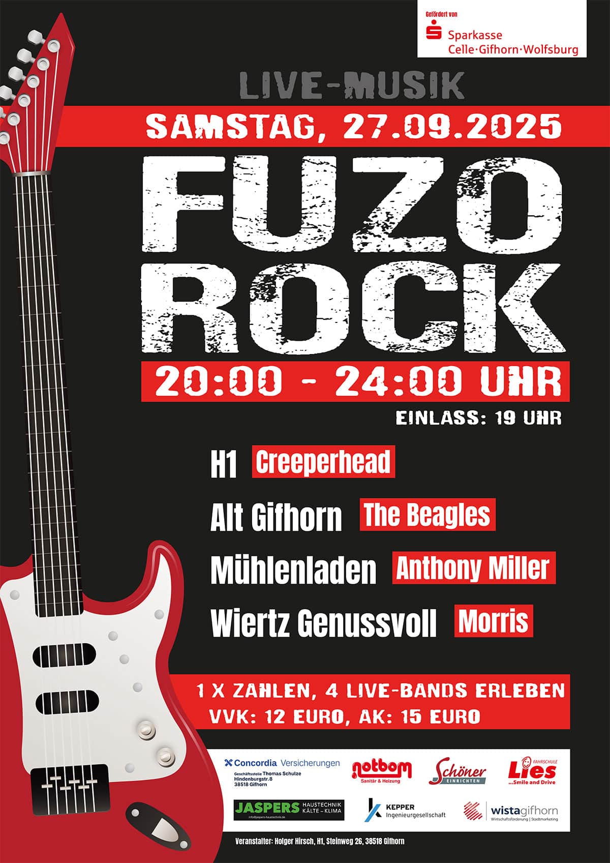 Am 27. September 2025 wird Gifhorns Fußgängerzone zur Bühne: Beim FuZo-Rock erleben Besucher einen Abend voller Live-Musik und besonderer Atmosphäre.